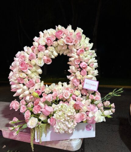Ramo de 200 rosas en color blanco y rosa, con corona y leyenda