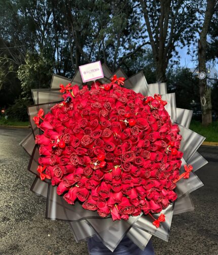 100 rosas rojas (color y modelo de envoltura varía conforme a existencias)