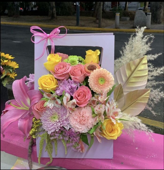 Hermosa bolsita de flores mixtas con vista en ambos lados