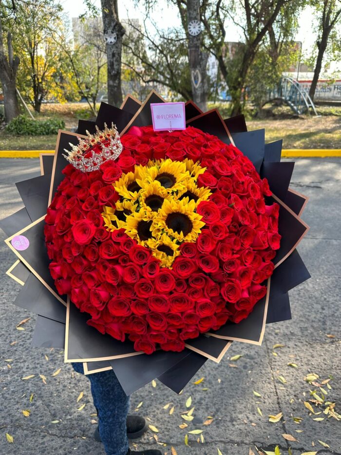 Maxi ramo de 200 rosas rojas mas 10 girales y corona